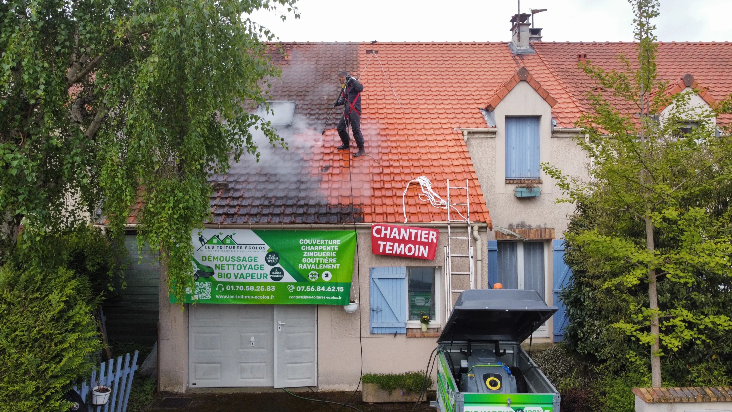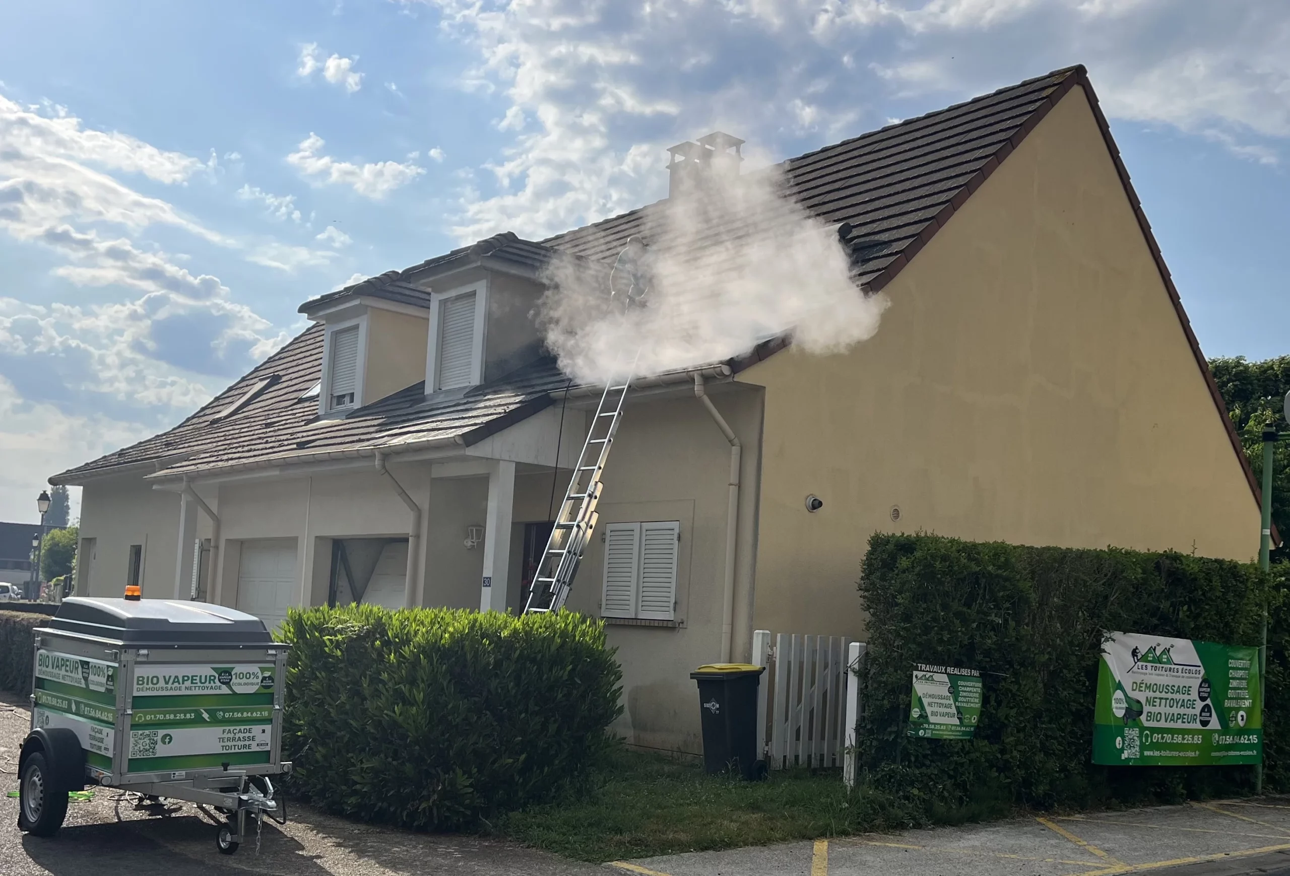 Spécialistes du démoussage toiture écologique, Les Toitures Écolos utilisent des procédés BIO VAPEUR permettant d’éliminer mousses et dépôts sans agresser les matériaux ni l’environnement. Cette méthode de nettoyage écologique de toiture préserve l’étanchéité tout en assurant une action efficace. Chaque intervention réalisée à Le Plessis-Robinson favorise une approche propre et responsable. Nettoyer sans polluer prolonge la vie de votre toit.