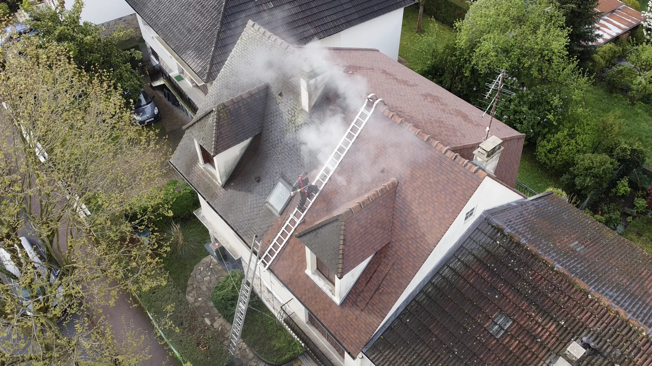 Nettoyage écologique de toiture à Sceaux par vapeur haute température sans traitement chimique